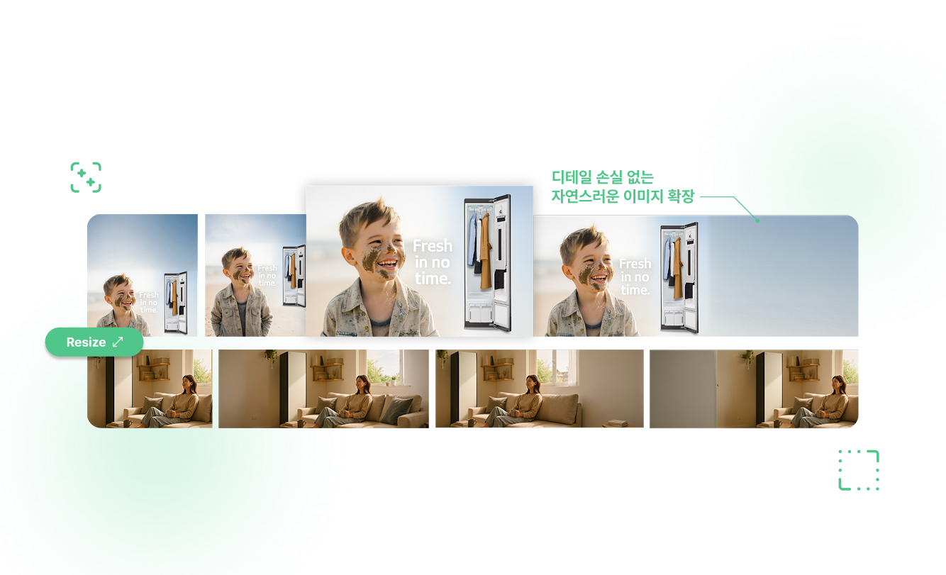 생성된 콘텐츠를 매체별 규격에 맞춰 다양한 사이즈로 쉽게 변환 할 수 있습니다.