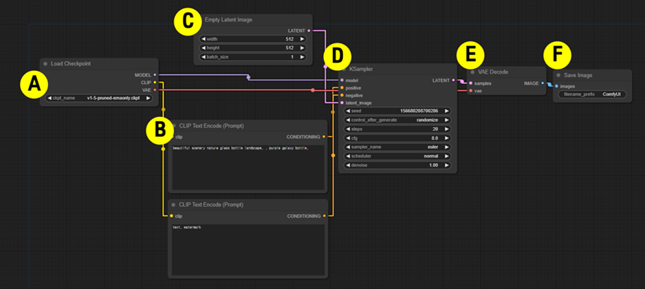C. Empty Latent Image: 생성할 이미지 사이즈와 개수 옵션 설정(512x512,1장)