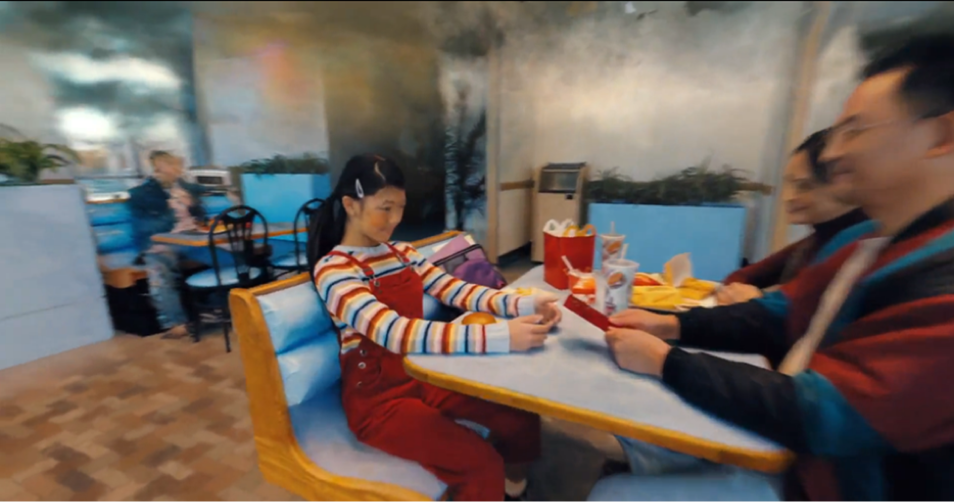 마치 영화 인터스텔라의 책장씬처럼 8차원의 세계에서 어떤 오브제를 지켜보는 듯한 ‘초현실적인 특징을 가진 사실적인 장면’이 생성된 것인데요. 이를 계기로 Karen은 업계 최초의 NeRF 광고 맥도날드의 <해피뉴이어>**를 제작하기도 하였습니다.