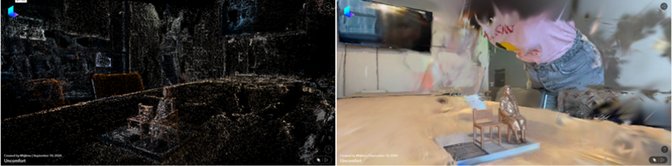 그럼 이걸 써서 뭘 할까를 고민할 차례인데요, 감독이자 아티스트인 Karen X. Cheng 등은 NeRF로 재미난 ‘영상(!)’을 만들기로 하였습니다. 왜냐하면, 연산에 의해 360의 공간이 렌더링 되는 과정 자체가 기존에는 보지 못했던 새로운 비주얼 씬을 형성한다는 사실을 깨달았기 때문이죠.