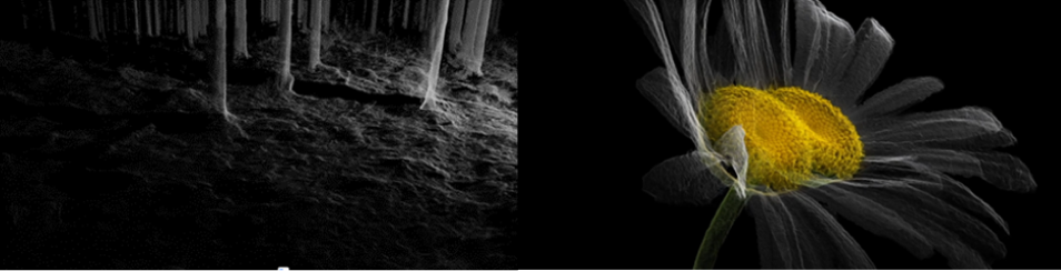 NeRF 이전에 LiDAR 촬영본도 대규모의 공간이 점 형태로 렌더링 되어가는 과정이 비주얼적으로 새로움이 있기에 많은 아티스트들이 작업에 활용하고 있는데요, 대표적으로 프랑스의 아티스트 로랑그라소(Laurent Grasso)도 이들 중 한 명입니다. 그는 오르세 미술관 전체를 LiDAR로 촬영해 새로운 영상미를 보여주기도 하였고, 최근 초청된 성곡미술관 <프랑스현대사진전>에 가지고온 Nowness 작품에서는 꽃이나 숲 같은 자연을 LiDAR로 촬영해 새로운 비주얼을 제시하기도 하였습니다.